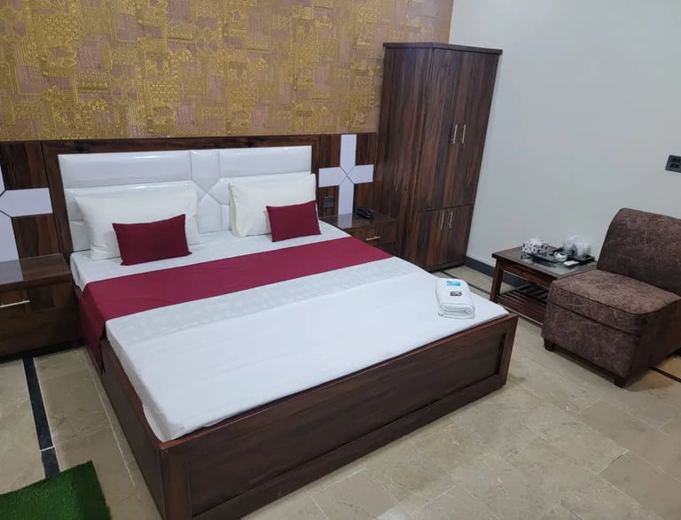 Our guesthouse is just a 5-minute drive from Jinnah International Airport, making transfers quick and easy.