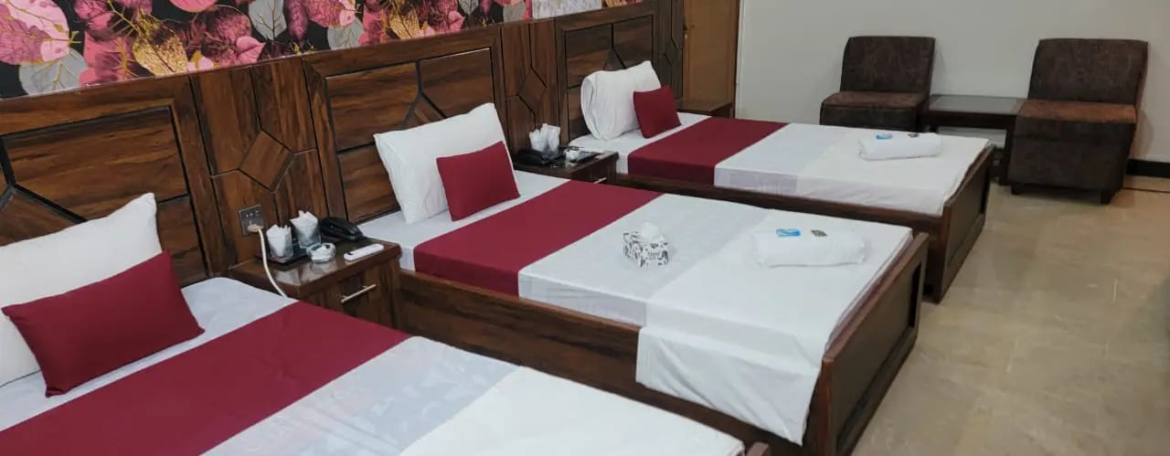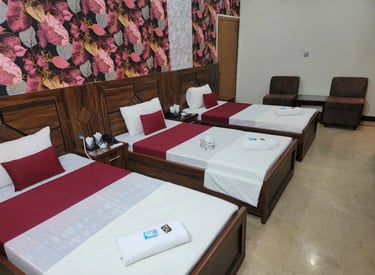 Located just minutes from Jinnah International Airport, our guesthouse offers cozy rooms with warm, inviting decor for a restful stay.